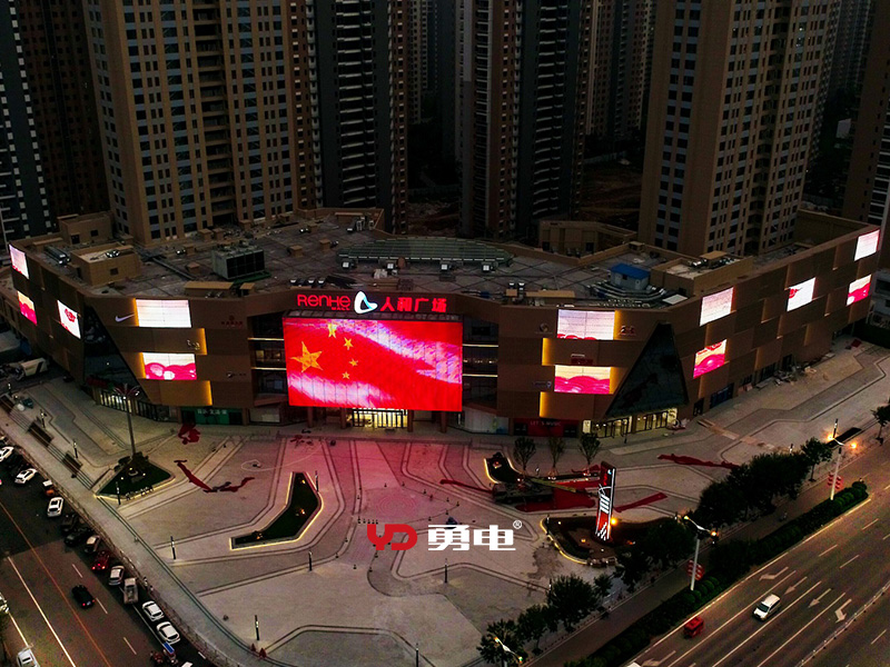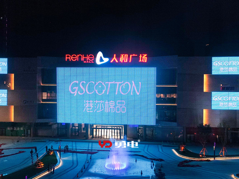 商場主入口采用勇電Φ40點光源打造了一塊面積達570平方米的大型戶外LED廣告屏,樓體周圍采用勇電Φ30點光源打造了12塊小型戶外LED廣告屏,整個戶外LED媒體立面總面積達到1110個平方。