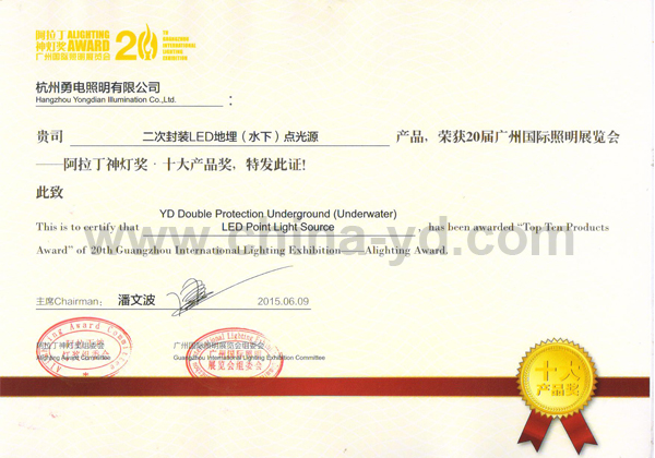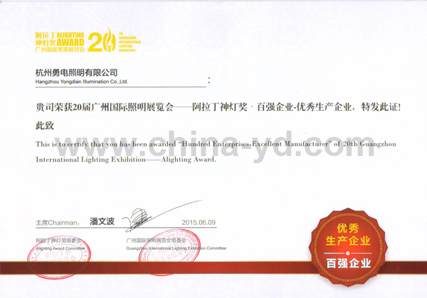 勇電照明獲2015年阿拉丁神燈獎(jiǎng)“十大產(chǎn)品獎(jiǎng)”和“百?gòu)?qiáng)企業(yè)”